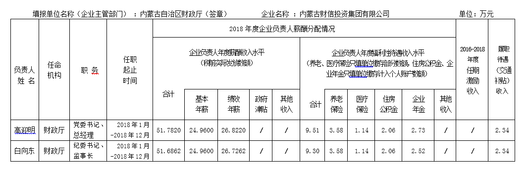 2018年度內(nèi)蒙古自治區(qū)直屬國(guó)有企業(yè)負(fù)責(zé)人薪酬信息公開披露表