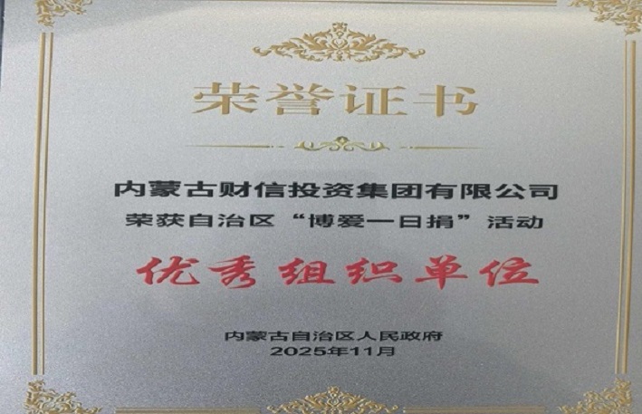 近日,內(nèi)蒙古財(cái)信投資集團(tuán)有限公司被內(nèi)蒙古自治區(qū)政府授予“博愛一日捐”活動(dòng)“優(yōu)秀組織單位”榮譽(yù)稱號(hào),并作為獲獎(jiǎng)代表出席了在內(nèi)蒙古電視臺(tái)舉行的頒獎(jiǎng)儀式。
